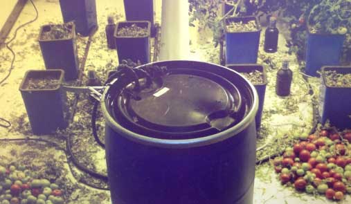 The stationary indoor plant lights side of this indoor grow setup was tall and spindly before the harvest and the count results were weak. You are seeing the total amount of tomatoes from six pots – the complete indoor grow harvest.