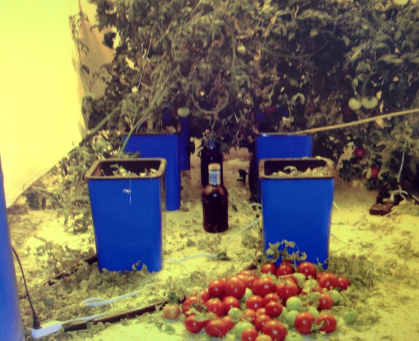 Tomatoes harvested and collected on their respective grow setup spaces – LightRail is on the right.