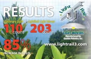 Just as remarkable as the total yield counts for each of these three side by side grow equipment experiments; the noticeable shadow details on the stationary grow light sides vs the LightRail light mover side – that tells the “why” of the story. When light gets in there to all those mid and lower level leaves, yield will increase significantly. LightRail is an efficiency product and is the single most important thing you can do to Super Charge your light. The results are in.